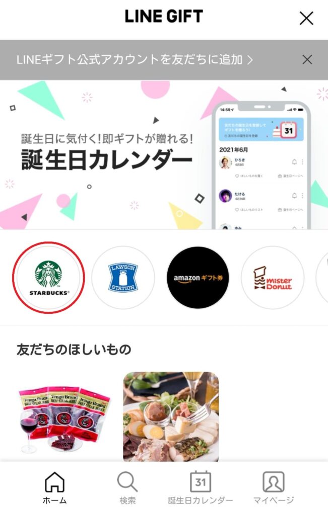スターバックスのドリンクチケットは、「LINEギフト」を使ってLINEアプリ上から贈ることもできます。