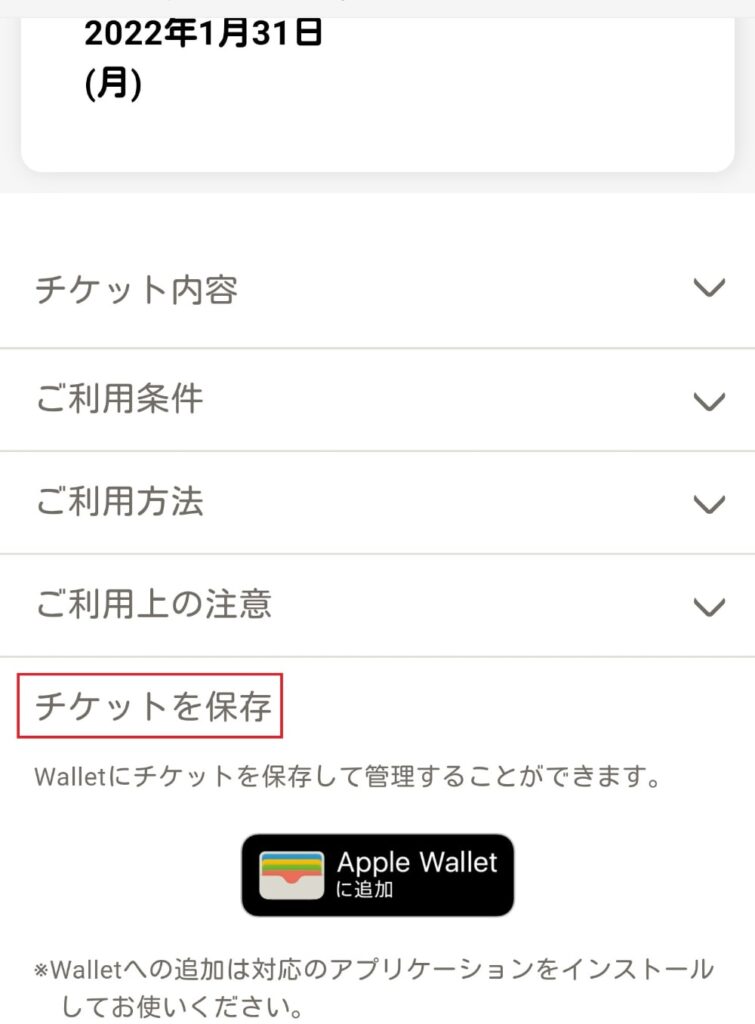 そのため、チケットを受け取ったらすぐに公式アプリやApple Walletへ保存しておきましょう。